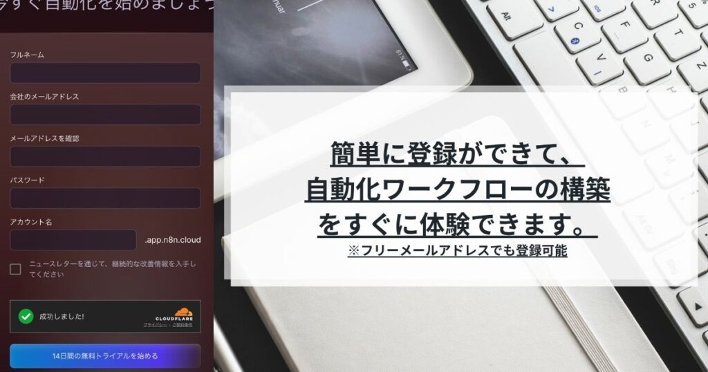 • ステップ1は、下記のn8n公式サイトでアカウントを作成。